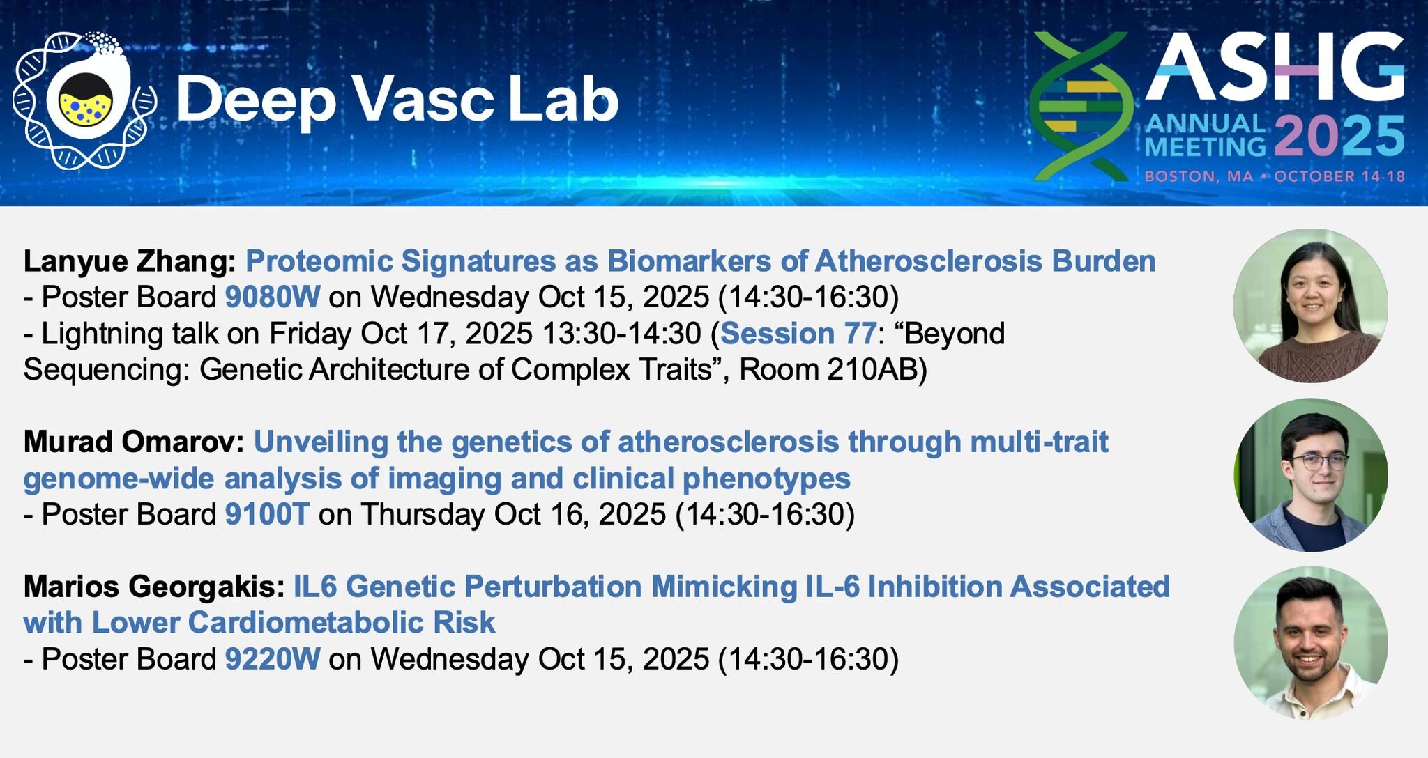 Our lab was last week at the Annual Meeting of the American Society of Human Genetics in Boston (Oct 14-18) represented by Murad Omarov 𝐋𝐚𝐧𝐲𝐮𝐞 𝐙𝐡𝐚𝐧𝐠 and Marios Georgakis.